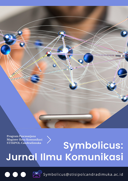 Symbolicus: Journal of Communication Studies is a peer-reviewed journal published by the Masters Program in Communication Studies, Stisipol Candradimuka, Palembang. This journal is dedicated as an intellectual means to disseminate scientific works of lecturer’s, researhers’, and scientists in the field of genuine Communication Science and/or related to other studies such as Economic-Political Studies, Social-Humanities, as well as Media and Cultures. Symbolicus accepts articles resulting from research, thought, and or academic/book reviews that are relevant to current phenomena.